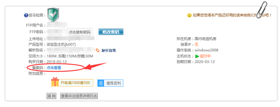 主機(jī)業(yè)務(wù)管理區(qū)-首頁(yè)-查看備案碼-點(diǎn)擊查看備案碼獲取