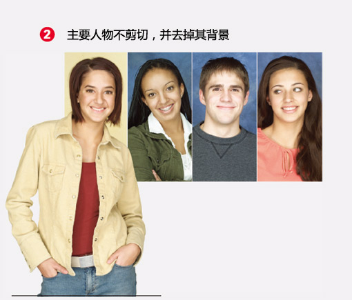 一旦定下各人的尺寸后,最重要的第一個(gè)人物不要剪切,但去掉其身后的背景。