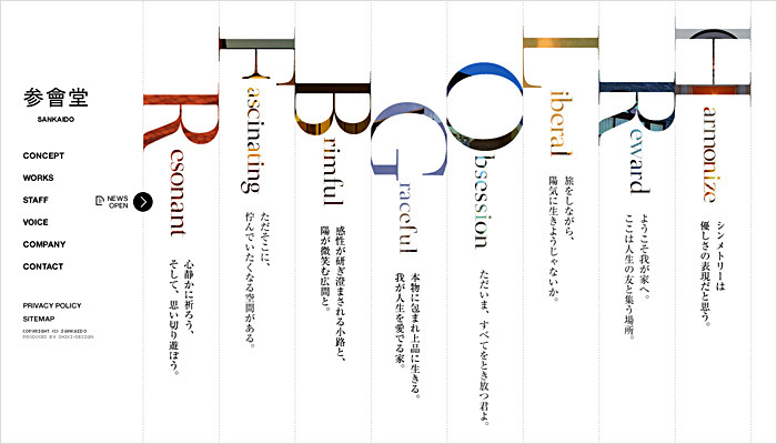 整體頁面趨于簡潔,但用文字跟圖形做了巧妙的結(jié)合,使整個頁面顯的簡而不空,同時整體文字大小對比也使頁面變的更具層次感。
