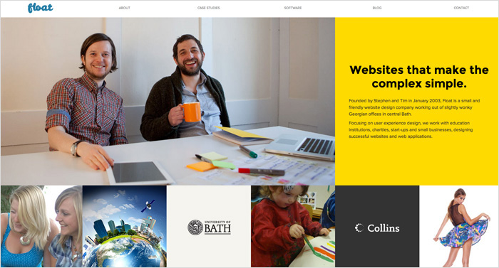 樸實(shí)素凈的頁面,利用黃藍(lán)的背景和元素點(diǎn)綴,豐富了頁面內(nèi)容,增加頁面活力。