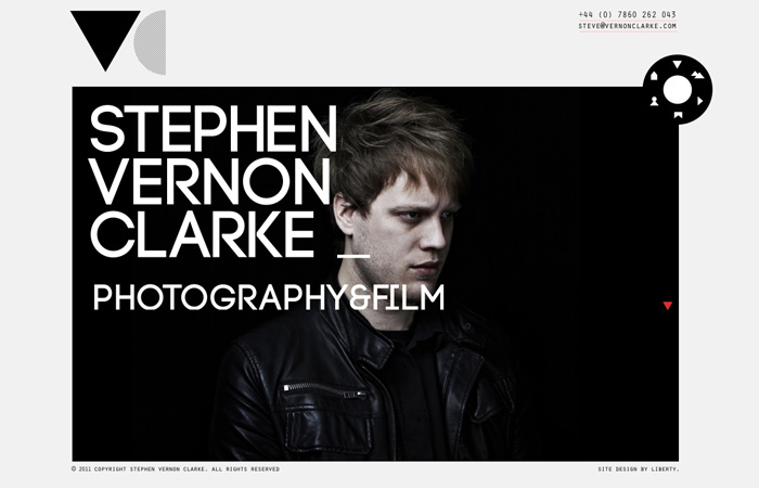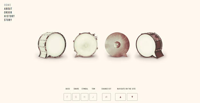 LOGO采用幾何圖形的表現(xiàn)方式,導(dǎo)航則巧妙的使用了輪盤的表現(xiàn)形式,使原本信息量不大且方正的頁面看起來活潑和飽滿。